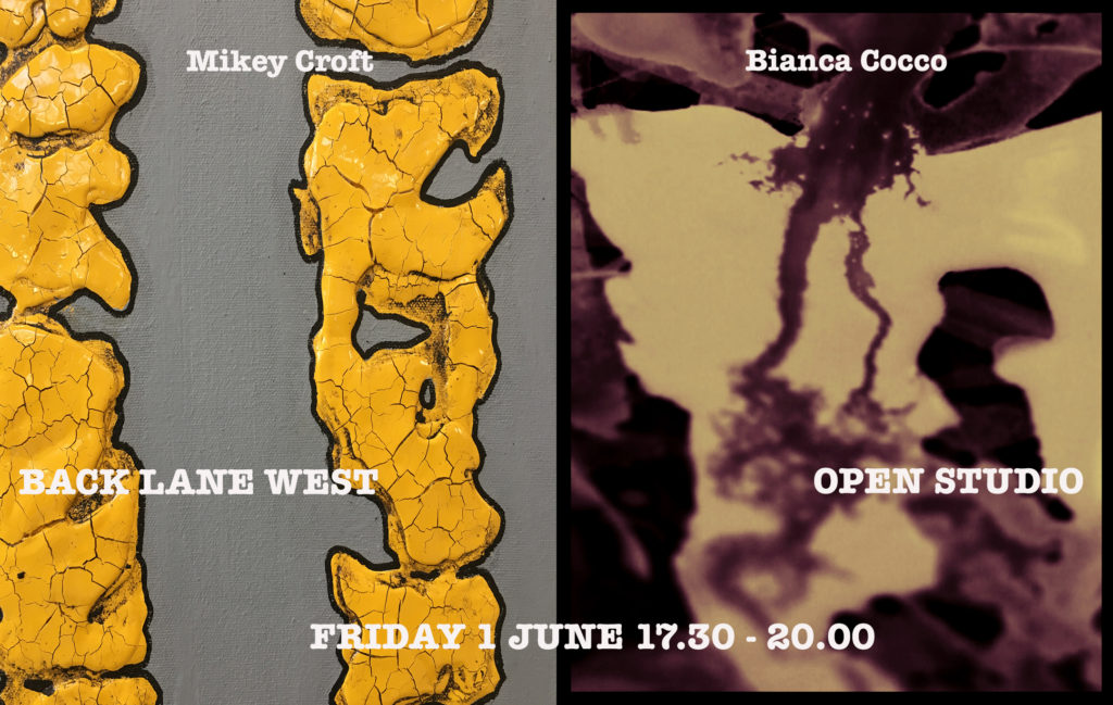 Mikey and Bianca are 2nd yr students at Falmouth University, and have been working at Back Lane West during an intensive 2 week residency to try out new ideas, which the University no longer provides the space for. They would like to invite you to see how those ideas have been developing.