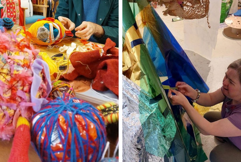 Shallal Studios’ Knitted Together project asks how we can extend our creative practice by using repurposed, sustainable and natural materials. Shallal Studios is an artist led studio, with projects designed around mediums that our artists want to explore. It’s an opportunity to bring in visiting artists with a specialist practice so that we can learn things like natural dyeing, felting, weaving with natural materials and knitting wearable sculpture. At Back Lane West we’ll be reviewing and taking further some of the mediums we’ve enjoyed best. On Saturday 18 th and Sunday 19 th March the space will be open for visitors to drop in, find out what we’ve learned and made and try some workshops for themselves. In one of our workshops we’ll be continuing our research with The Seaweed Institute into weaving and making jewellery with seaweed. Others will utilise and repurpose discarded materials to make textile art and sculpture. https://shallal.org/articles/knitted-together-festival Shallal Studios is grateful to project funders Arts Council England, Postcode Local Trust and The David Family Foundation.