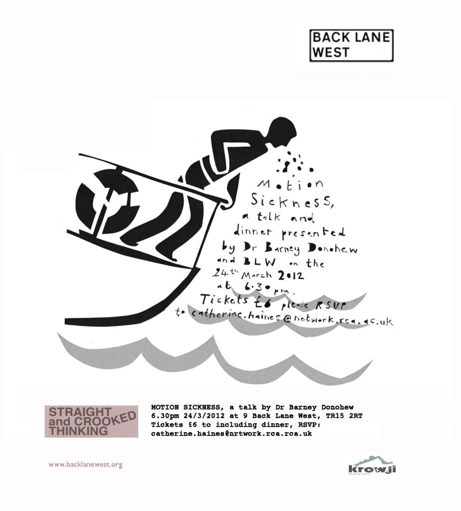 You are invited to the first in this year’s series of Straight and Crooked Thinking talks and meals. Knowing the inquisitive nature of you all we have decided to introduce some talks that are not specifically art related, and this time you have an opportunity to hear everything you needed to know about motion sickness. The talk will be followed by the opportunity to engage with thoughtful and meaningful discussion and hopefully to exchange the latest gossip, over a beautifully prepared meal.